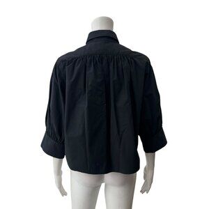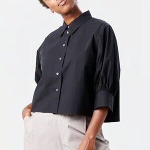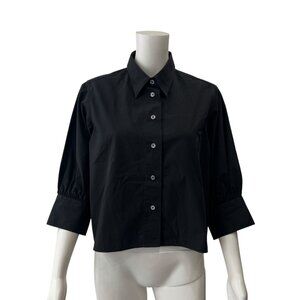 $430 Studio Nicholson Black Cropped Bahia Cotton Collared Shirt Top size 1/Small