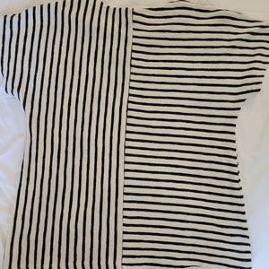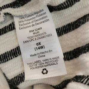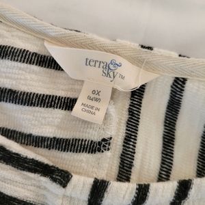 White and Black stripes, one side of the shirt has stripes going vertical and the other side going horizontal. Plus size 14w, made of 74% cotton and 26% polyester. In great condition hardly even worn. Short sleeve