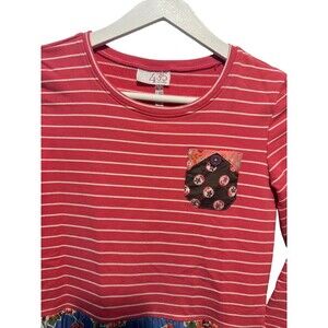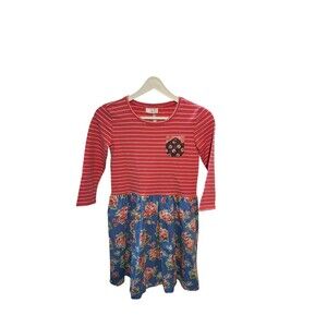 This beautiful Matilda Jane Friends Forever Abigail Dress is perfect for any occasion. The dress features a floral pattern with a stripe design, long sleeves, and a round neckline. It is made of a knit fabric type that consists of nylon, spandex, and cotton materials, making it stretchy and comfortable to wear. The dress is machine washable and has a collarless feature, along with pockets, making it perfect for both casual and party occasions. The knee-length dress is suitable for girls who wear size 12 and is suitable for the winter, fall, and spring seasons. The dress is not handmade and is perfect for preppy-themed events. Smoke and pet free home. (Bin AH)
