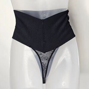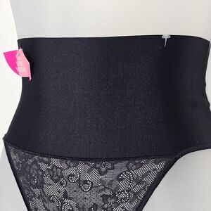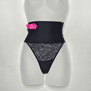 New Maidenform black highwaist lace thong. Features smooth compression shaping waistband. Consider this as practical lingerie with the sheer lace back and seamless waistband