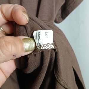 (#437) Unbranded Brown V-Neck Cuffed Sleeve Shirt Size Medium