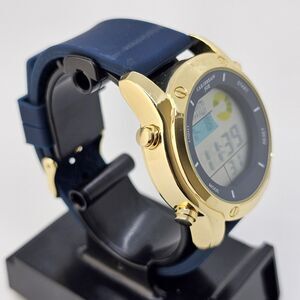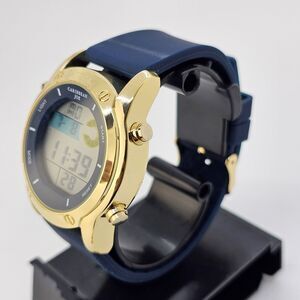43MM Caribbean Joe Men's Digital Watch Alarm Chrono Gold Case Blue Plastic Bands