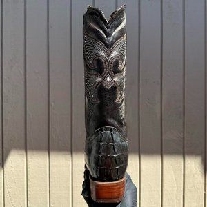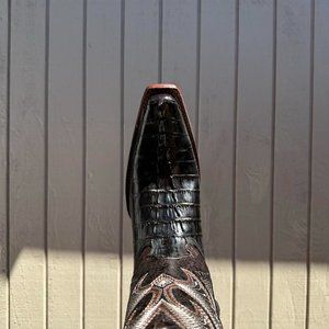 #44 Imitation Western Boot with Cocodrile Tail Details in Brown Color