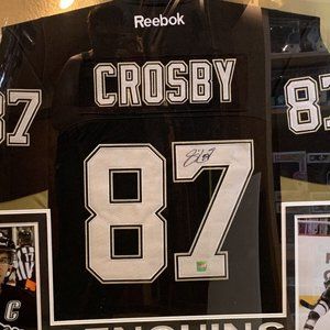 You are buying a new (never even hung it up) - 44” X 36” Pittsburgh Penguins SIDNEY CROSBY Autographed Jersey by FRAMEWORTH that they Framed. I got this 4 years ago from a large auction house and just never put it up. It has the Framewoth coa hologram as shown. Frameworth does a perfect job of displaying this gem with extra triple matting. You can’t get this anymore - anywhere. I never got any other Coa and when I called Frameworth at the (416) phone number they said they could send me another one but I never got around to it. This is ready to hang up easily with the wire on the reverse so no measuring for two sided frame jobs that are very hard to figure. One screw and this is up and proudly on display! Try finding one anywhere! This is it!