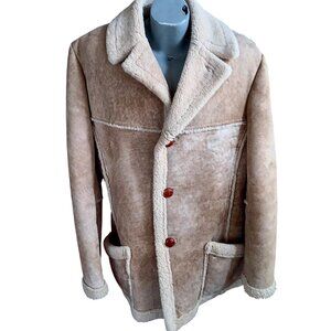 44 XL Vintage Shearling Sheepskin Coat Sawyer Napa Mens Rancher Western USA 80's