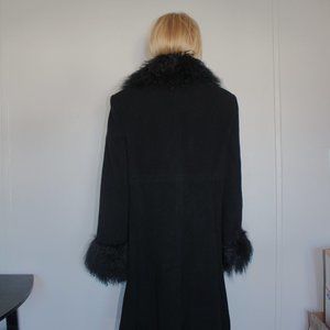 J. Percy black lambswool coat, Mongolian lamb fur collar and cuffs, button closure, 2 pockets, size 16. Beautiful, like new coat Measurements are arm pit to pit 24", shoulders 19", sleeves 23" and length 41".