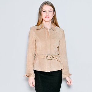 441. VINTAGE Context Leather Suede Tan Jacket with Belt Sz 8
