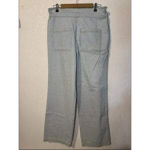 Made in a light wash denim, these jeans feature a pull-on design with an adjustable drawstring waist for a relaxed yet flattering fit. The wide-leg silhouette creates a breezy, modern look that pairs perfectly with tanks, tees, or blouses. Soft, lightweight denim with added stretch ensures ease of movement and all-day comfort.