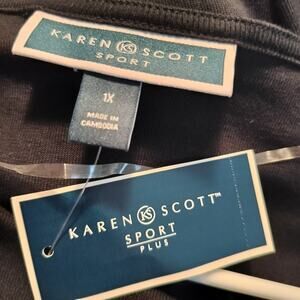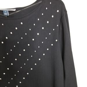 4449)Karen Scott Sport Deep Black 3/4 Sleeve Studded Boat Neck Plus Dress 1X