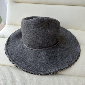 $445 Gigi Burris Women's Gray Drake Asymmetrical Wool Felt Bead Fedora Hat O/S.