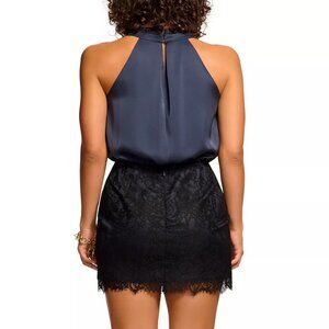 445$ Ramy Brook Magdalena Cowl Neck Lace Skirt Mini Dress Size 2 Navy Blue