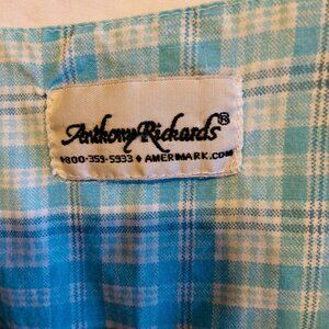 A classic Anthony Richards vintage housecoat in a charming blue checkered pattern, size XL. Perfect for comfortable lounging, this piece exudes timeless allure.