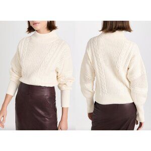 $448 Veronica Beard Ivory Cable Knit Wool Bertilda Sweater Top size Small
