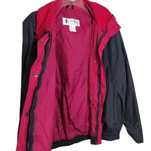 4483)Vtg Columbia Sportswear Women Black Pink Bugaboo Button Zip Nylon Jacket L