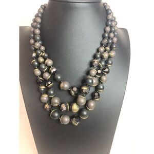 449 Premier Designs beaded gray black goldtone layer necklace 17"-19"
