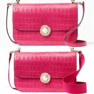 Kate Spade New York Audrey Croc Embossed 3-Way Pink Leather Flap Crossbody & Dust Bag