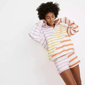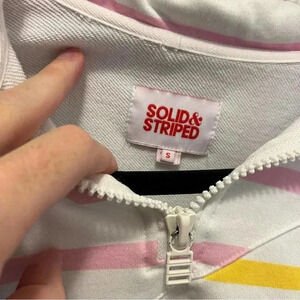 Founded on a beachy stretch of the Hamptons, Solid & Striped bathing suits are made of top-quality fabrics in shapes made to last. Stay cozy post-swim in this quarter-zip sweatshirt pieced from '80s-inspired colorblock stripes.