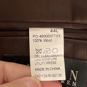 Elevate your wardrobe with the sophisticated charm of a 44L Lauren Ralph Lauren sport coat. Crafted from luxurious wool tweed, this brown herringbone jacket is a versatile addition to your attire, seamlessly blending with both casual and formal settings. Its timeless design features a classic notch lapel, a two-button front style, and a long jacket/coat length that offers a flattering silhouette.