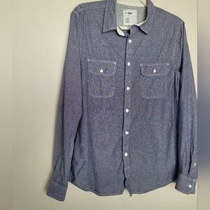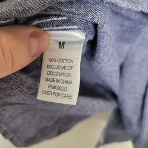 44MM Button Down Shirt Blouse Women's Medium Two Pockets Blue Chambray Cotton