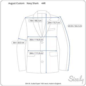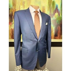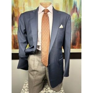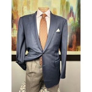 ~ITEM~ Blazer ~CONDITION~ Great, no flaws ~LISTED SIZE~ 44R ~ BRAND~ Custom ~EDITION~ N/a ~STYLE~ 2 button ~PATTERN~ Sharkskin ~COLOR~ Blue ~MATERIAL~ 100% wool ~Fitting Notes~ ~ALTERATIONS~ N/a ~WEIGHT~ Four seasons