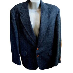 44R Vintage Mens Wool Blazer Suede Elbow Patches Dobbshire USA Herringbone 80's