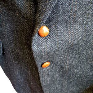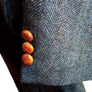This vintage men's blazer exudes timeless elegance with its rich wool fabric and classic design. The suede elbow patches and leather buttons add a touch of sophistication and durability, making it an ideal choice for those who appreciate vintage fashion. Its tailored fit and enduring style ensure it remains a cherished piece in any wardrobe.