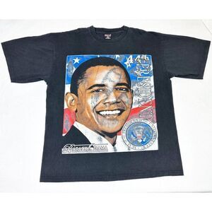 44th President Barack Obama T-Shirt Black 3XL Hip Hop Rap Tee Y2K