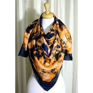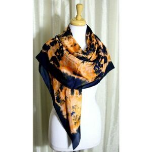 44"x45" BLUE ORANGE WHITE ARTWORK HANDROLLED 100%SILK WOMEN'S SCARF SHAWL WRAP