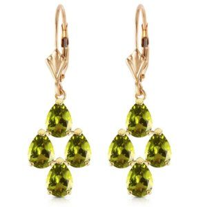 Allow a circle of beautiful natural peridot stones to encircle your earlobes with these 14k solid gold leverback earrings with peridot. The elegant simplicity of these gold leverback earrings are highlighted by the radiance of eight pear shaped peridot stones. With a weight of four and a half carats, there are enough gems to light up an entire room with their beauty.
