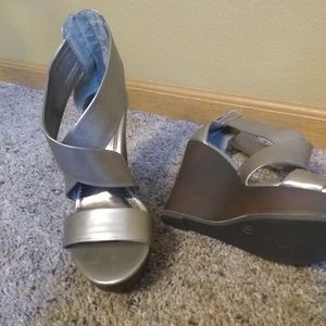 4.5" New Wedge Platform Heel Silver Shoes Size 8