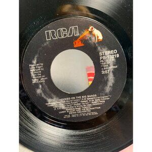 Vintage RCA 45 RPM vinyl record featuring "Hooked On The Big Bands" by Larry Elgart And His Manhattan Swing Orchestra.