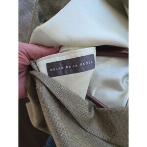 #45 VTG Oscar de la Renta Houndstooth Blazer 52% Silk 48% Wool | Brown Tan | 48R. Condition is Pre-owned - Excellent. Shipped with USPS Ground Advantage.