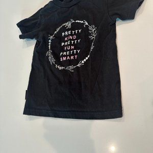 Dot Australia, Black shirt with "pretty kind/pretty fun...", size 4