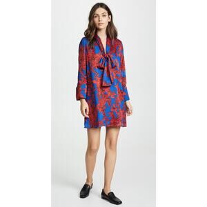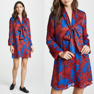$450 ALICE + OLIVIA Bow Neck Tie Vibrant Blue & Red Floral Mini Dress – Large