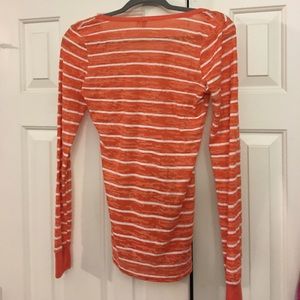 Medium orange & white striped Top long sleeve semi Sheer No Trades** Only Reasonable offers will be considered **sold as is in NWT/New or preowned/ used condition with the expected wear associated with/to preowned used Condition
