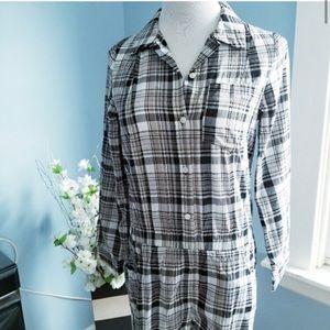 Black and white plaid long sleeve romper, partial button up, adjustable roll up long sleeves, it has pockets!