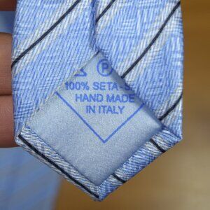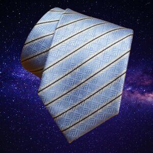 $450 Brioni Baby Blue White Regimental Geometric Silk Tie Handmade in Italy