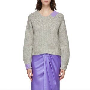 $450 Helmut Lang Gray Purple Camel Wool Knit Sweater size XS