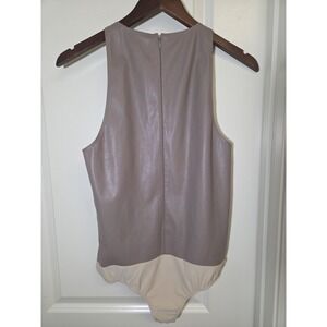 Description: Absolutely stunning Lapointe faux leather bodysuit. Flattering halter neckline. Versatile beige color. Dress up or down.