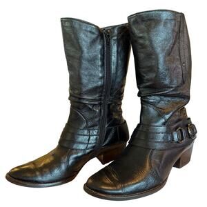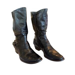 $450 Luxury Paul Green Austrian BLK Leather Buckle Slouchy Boots EU36 US5-5.5