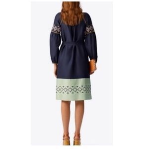$450 NWT Tory Burch Katya Navy Green Embroidered Tunic Style Midi Dress Size 0