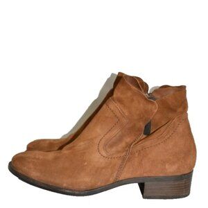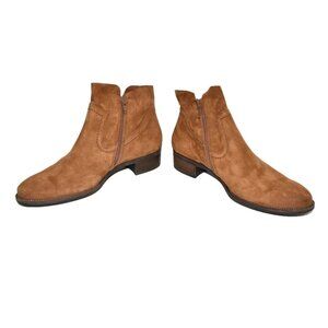 $450 PAUL GREEN Boston Bootie NUBUCK COGNAC ZIP COMFORT 10 (TPO18.5)
