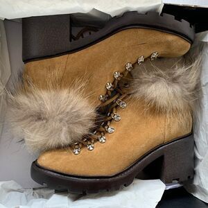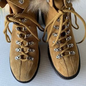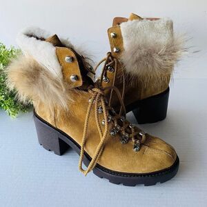 Sigerson Morrison Women's Naia Round Toe Suede Fur Shearling Hiker Boots 41EU 11US Khaki Suede