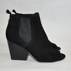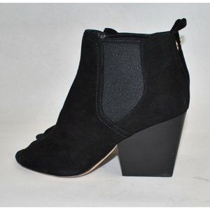 $450 TORY BURCH Gemma Open Toe Bootie BLOCK BLACK SUEDE 6 (SE14)