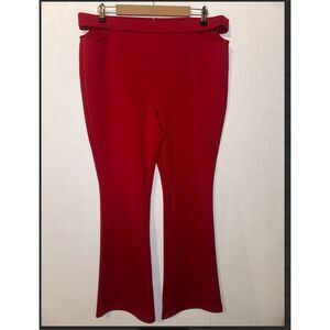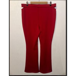 451 Women's Red Cutout Waist Flare Pants Women’s Stretch High Rise Split Hem