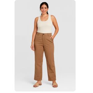 453 Women's Khaki Wide Leg Pants Casual High Rise Trousers with Pockets