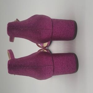 Step into sparkle with these stunning Betsey Johnson block heel sandals! Featuring a bold fuchsia glitter finish, open toe design, and secure ankle strap, these shoes are perfect for parties, weddings, or a stylish night out.