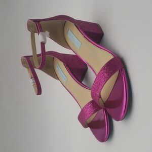 Betsey Johnson sandals, glitter heels, block heel sandals, fuchsia shoes, women’s party shoes, size 7.5, ankle strap heels, pink heels, special occasion shoes, NWT