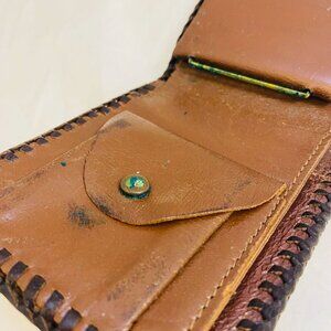 #4577 Brown Leather Wallet VTG embossed POP dad father