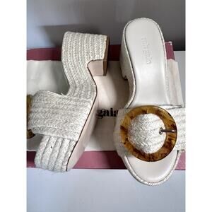 $458 Cult Gaia Sandals Slide Cleia Platform Off White Sz 36.5 Chunky heel Buckle